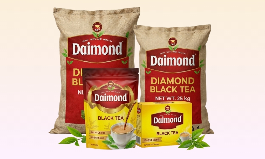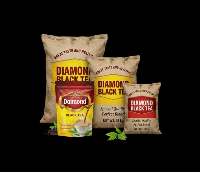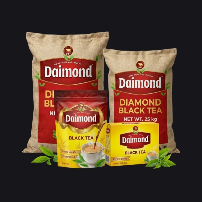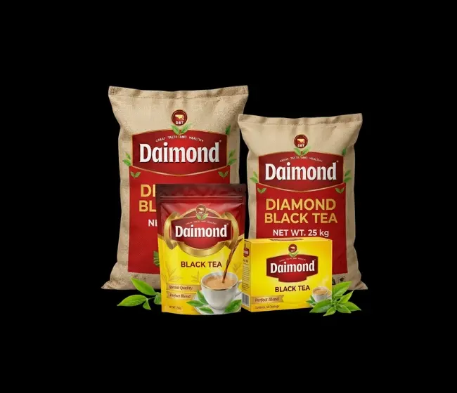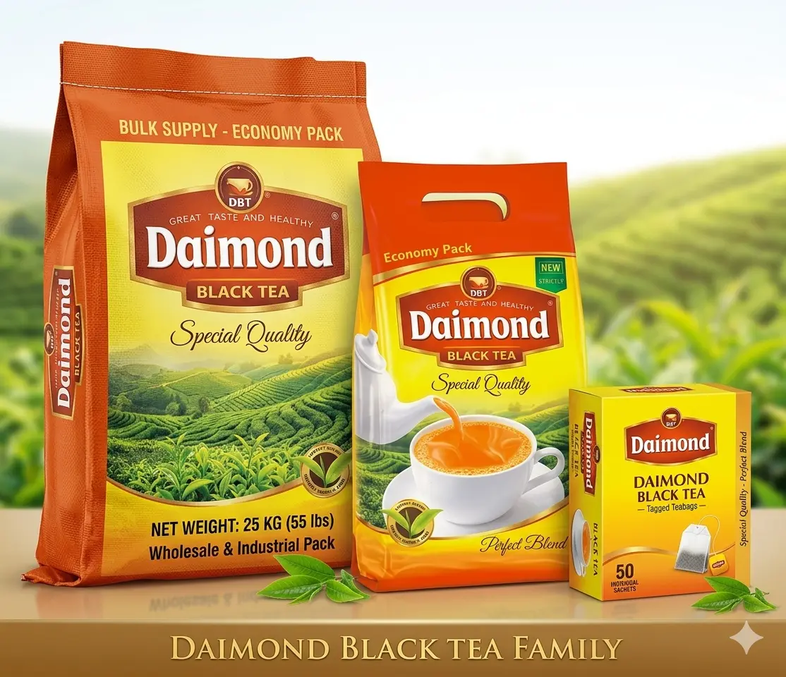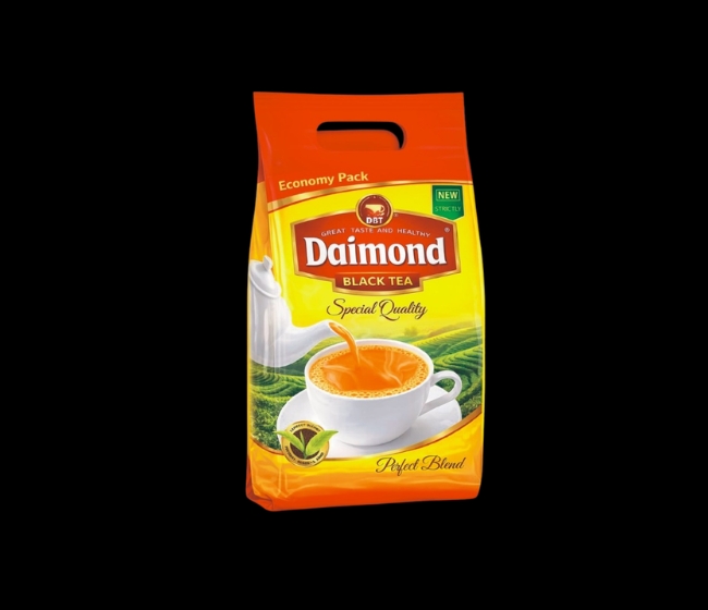 Diamond Black Tea is freshly packed, Halal certified, and sourced from premium leaves to give rich color, smooth taste, and consistent quality in every cup.